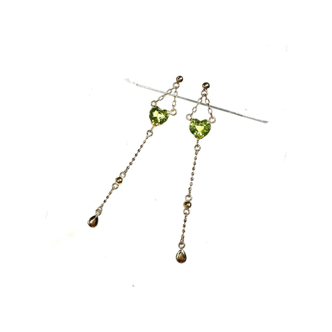 明るいグリーンが爽やかなペリドットのロングピアスです。
